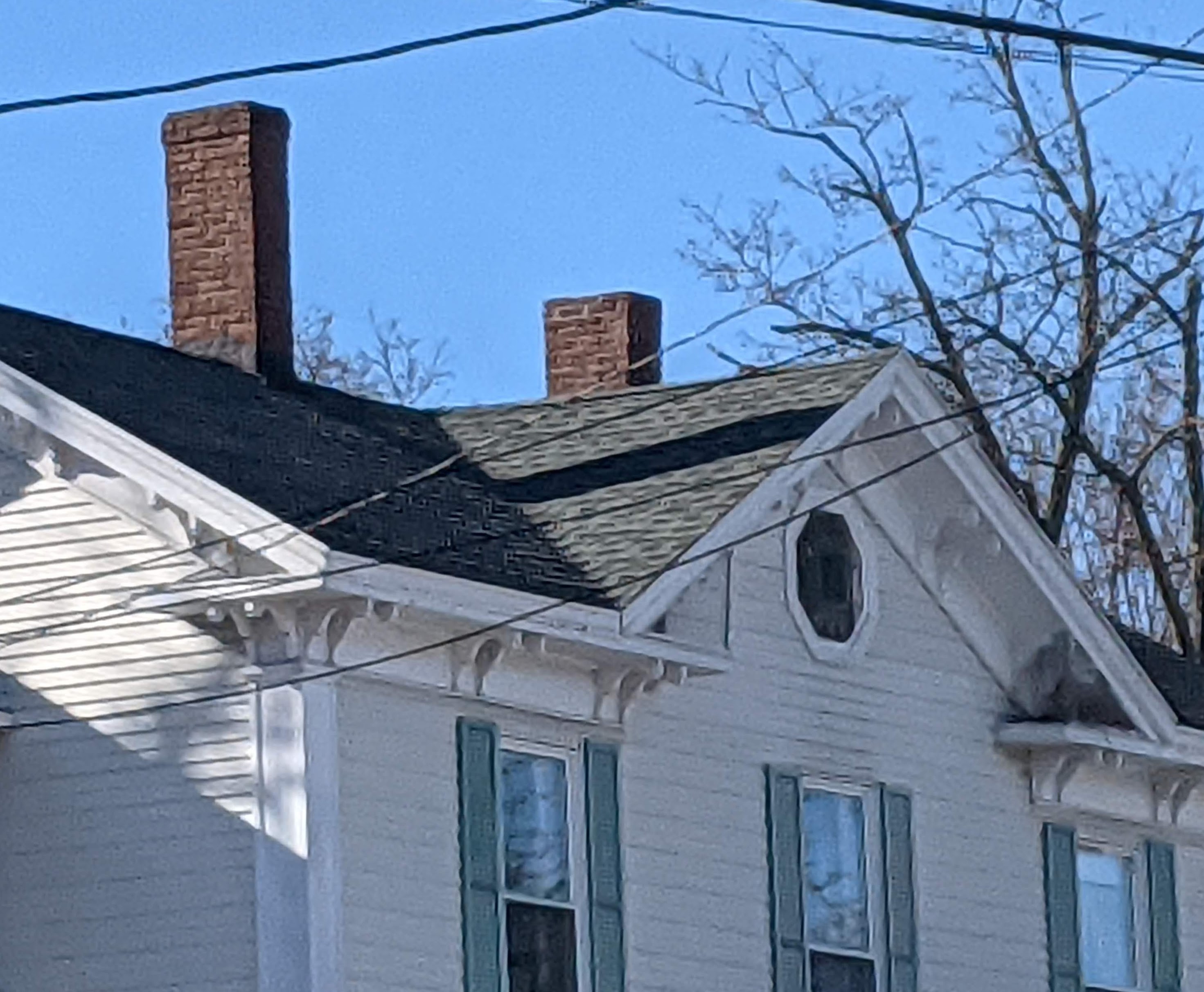 A double-take is when your eyes take a second peek without asking your permission. There was something about that sky-space shape between the two chimneys. I looked, then I looked again. Yes, I told myself, that’ll make a pleasant look-at-that lingering moment. I sat down on a nearby step, and started to lay in the GPS points. (That makes more sense if you’ve read my book!)