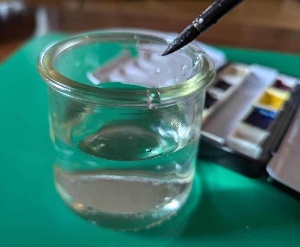 Simple enough, right? It took me a while to break the habit of racing right into the pan of color with my excited brush without dampening my mixing area first, but I’m learning. Good luck, it’s well worth the time it takes to retrain your eager hand!