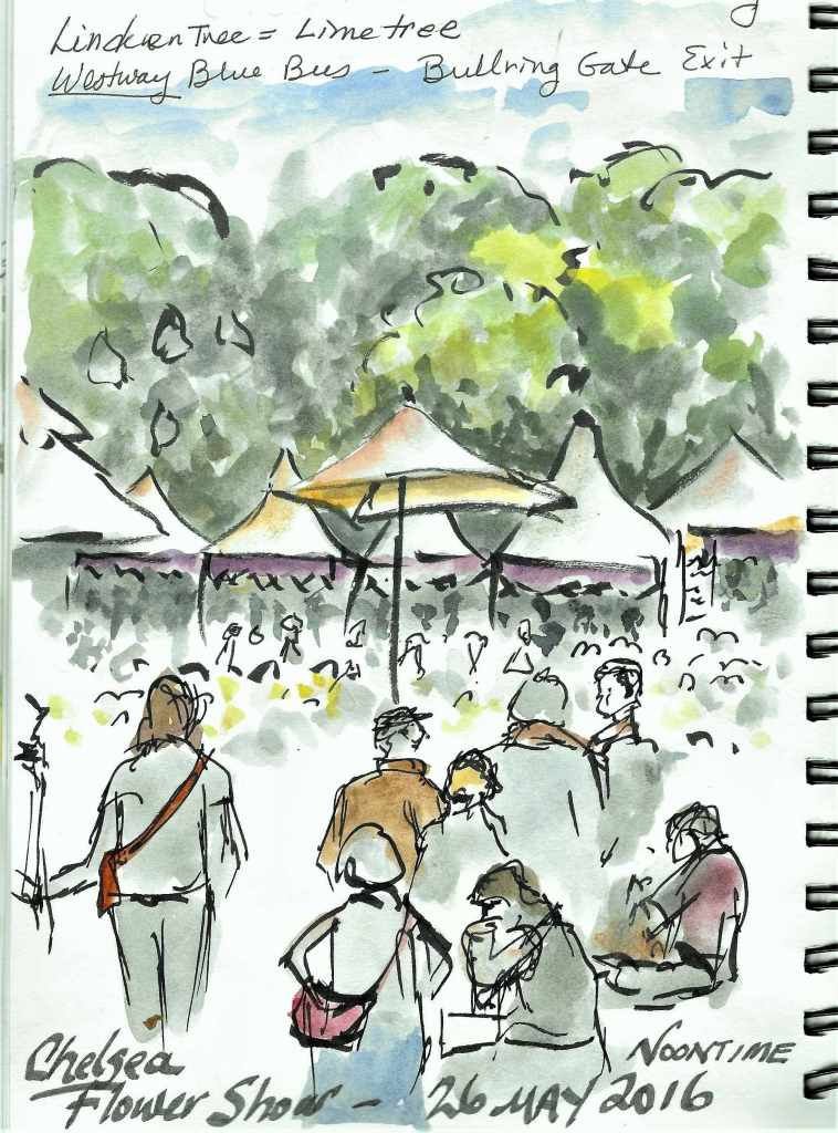 Still fully jet-lagged, but with no time to waste, we headed out to the amazing Chelsea Garden Show. It is stunning sensory overload in every way. Every May, over 150,000 people attend this massive five-day garden show. It is so well-organized but no surprise there; it has been in Chelsea since 1912, previously in Kensington, starting back in 1862. I’m glad I took loads of photos; they’ll be great reference material for future sketches and possibly paintings.