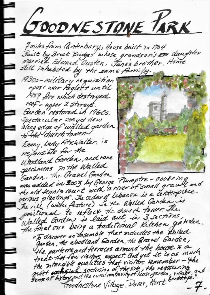 I’m so glad I created these detailed right-hand pages for each site while I was back home. Day by day, I’m filling the facing pages here in England, and I’m surprised by the affectionate feeling of familiarity I have with places I’ve never actually visited before. I also know about special areas at each site, places I don’t want to miss, that no one in our tour even knows about.