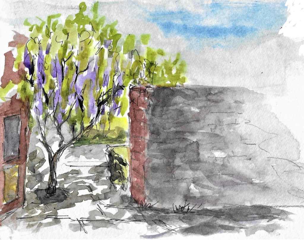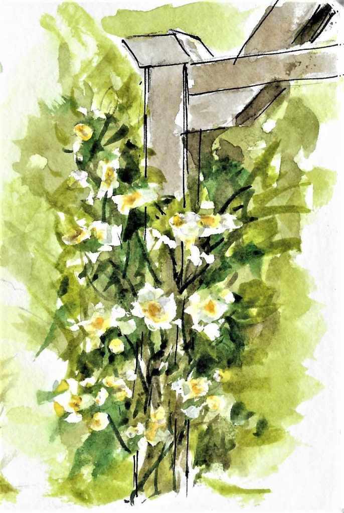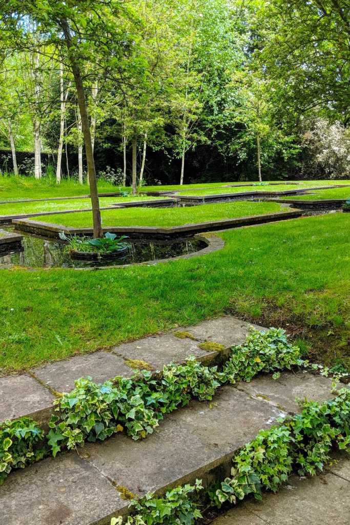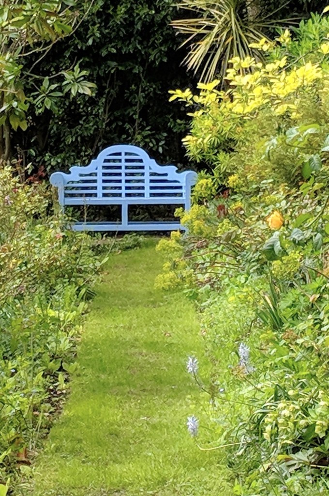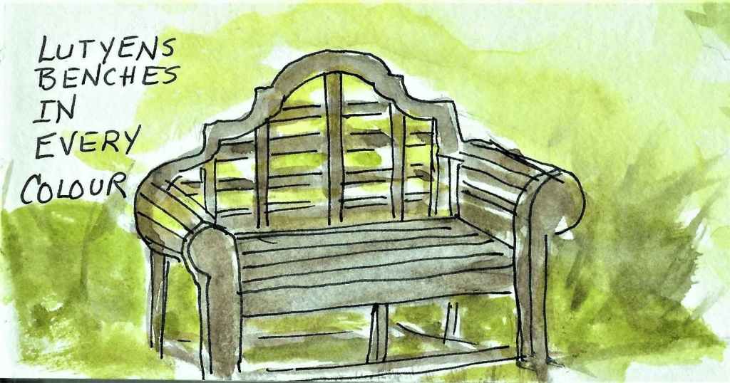 What a beautiful day it has been, wandering with Judy along the winding paths through outdoor “rooms” and manicured water gardens. Lutyens’ benches, inspired by the British architect, Sir Edwin Lutyens, dotted the gardens and made restful pondering and sketching so much easier.