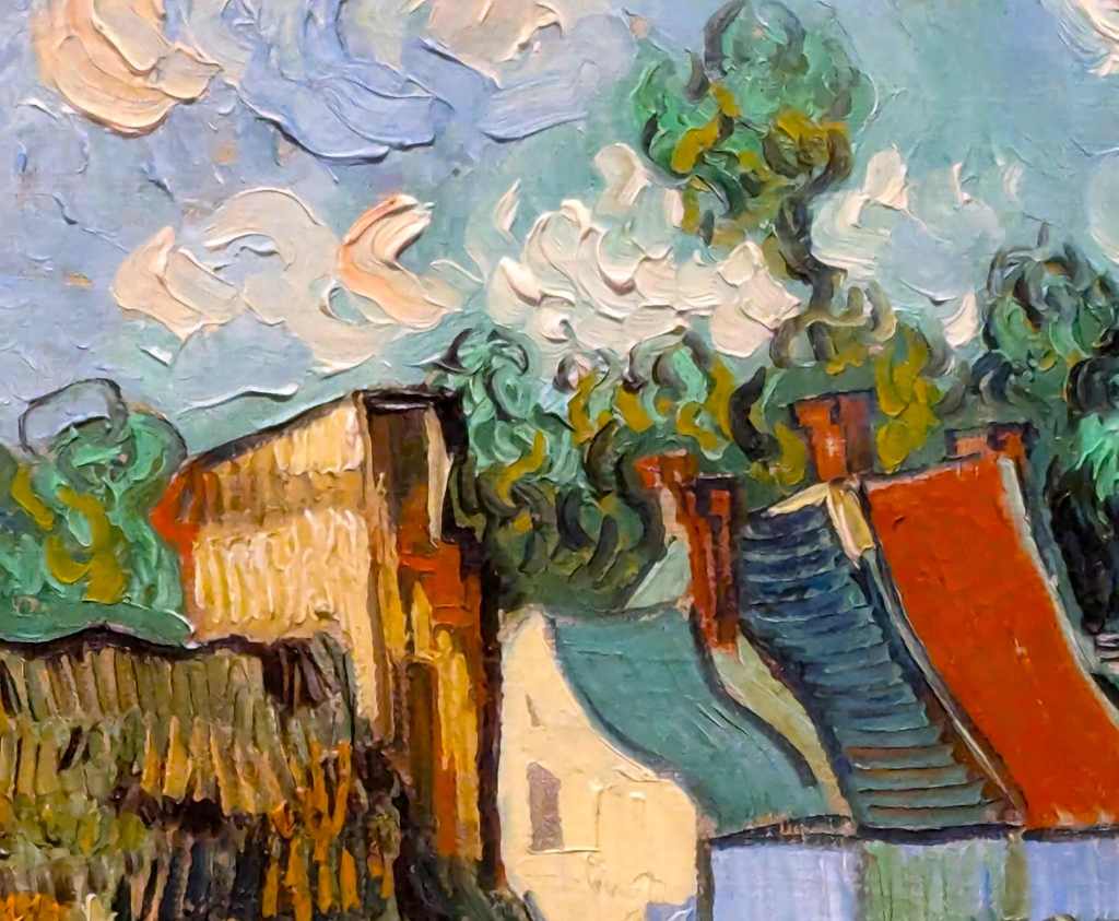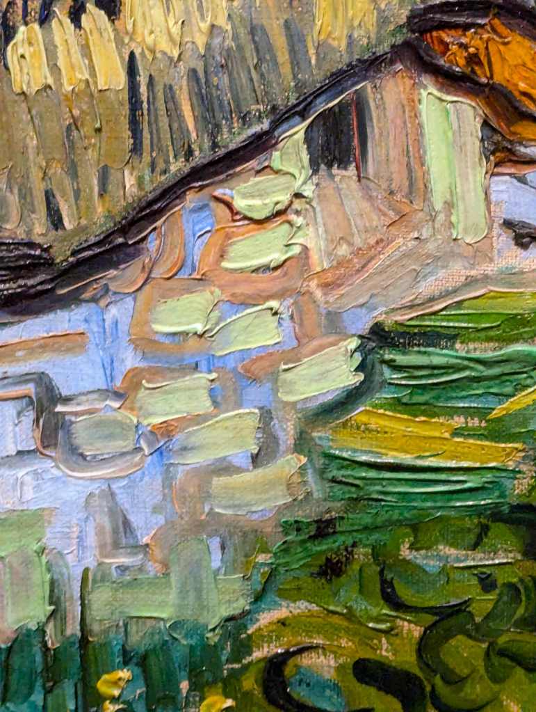 I looked closely at his brushwork, seeing how textured it was, recalling how juicy it was when he applied it to the canvas. I felt him saying, “So what do you think?” My gut knew that I had been there with him when he painted this. Not my intellect, my gut, no words. Perhaps I had been a neighbor in Auvers or perhaps a fellow artist working right next to him as he grumbled and painted.