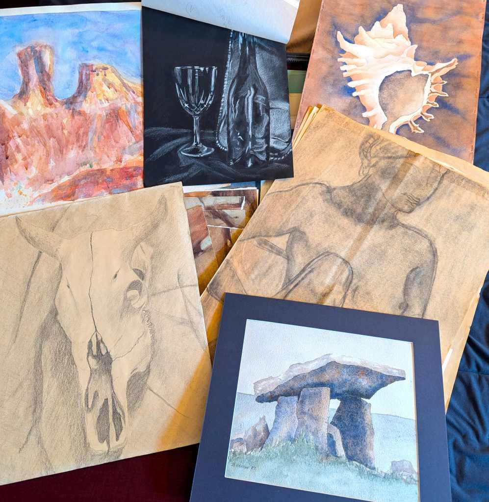 I also explored my own artistic past. I was delighted by the dusty contents of my seven art portfolios, each one bulging with drawings, watercolor studies, and finished paintings that I created over the past fifty years. I am glad I saved them all, especially those charcoal sketches done in figure drawing class in the spring of 1971, on what is now crumbly brown newsprint. Those were exciting times.