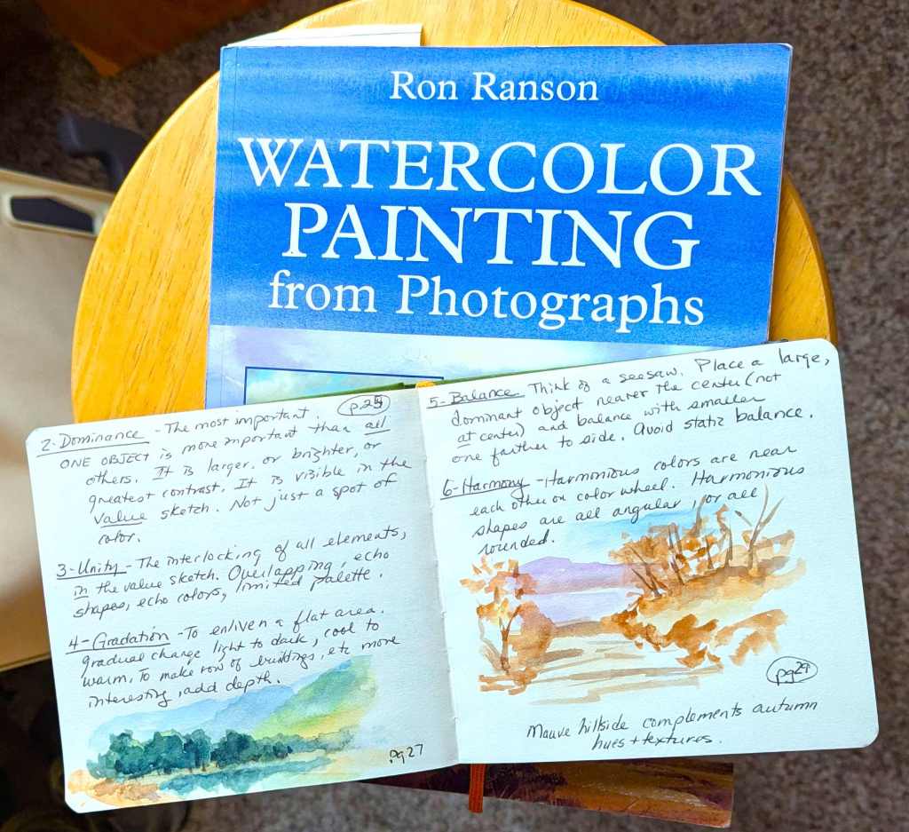 ART INSTRUCTION: I am back to enjoying the brilliant writing and illustrations of my beloved mentor, Ron Ranson. His book, Watercolor Painting From Photographs* is priceless instruction for any watercolorist who is baffled by their less-than-stellar results when working from photos.